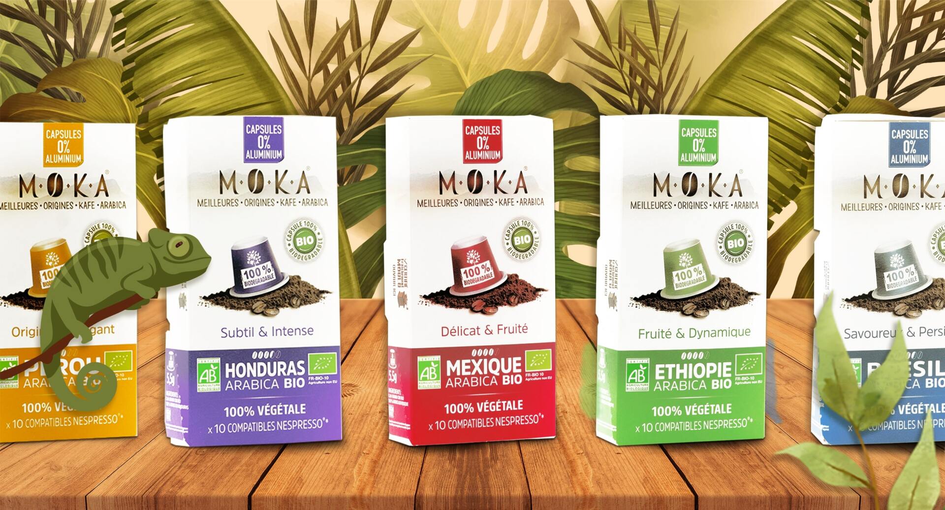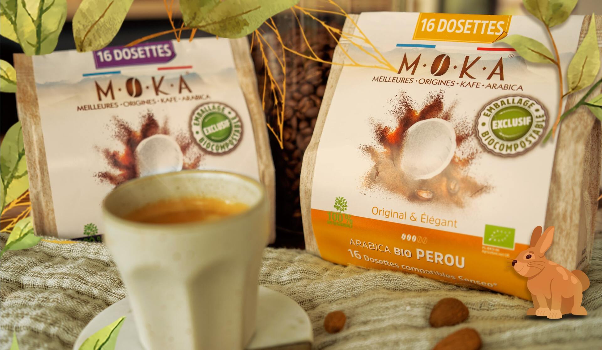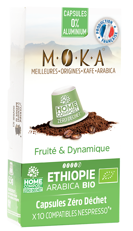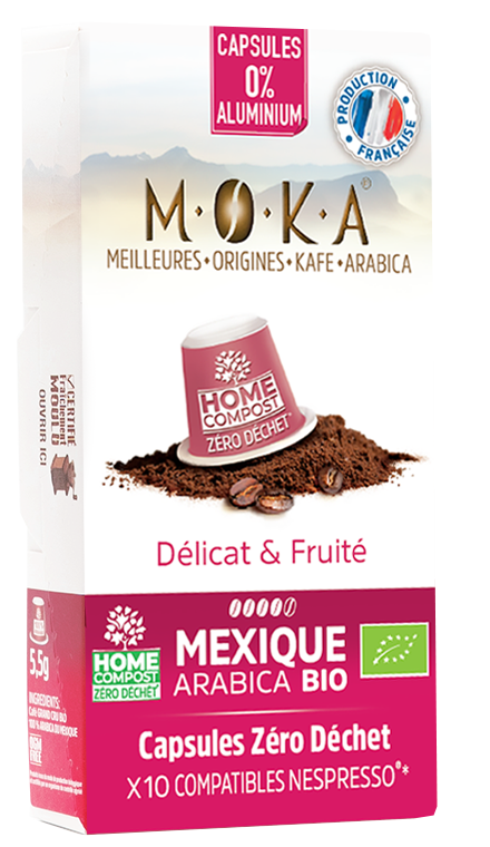 Nous proposons du café issu de l'agriculture biologique dans des capsules 100% végétales et home compostables compatibles Nespresso®.